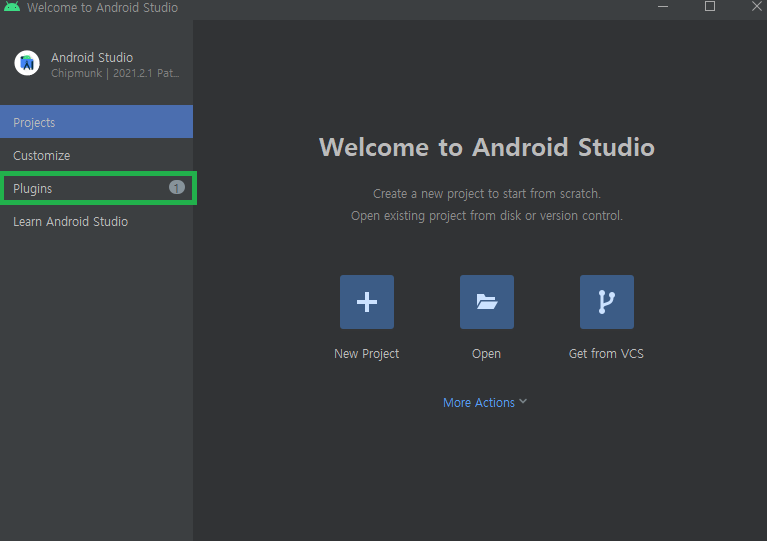 초기화면에서 왼쪽 하단을 보면 Plugins를 볼 수 있습니다.