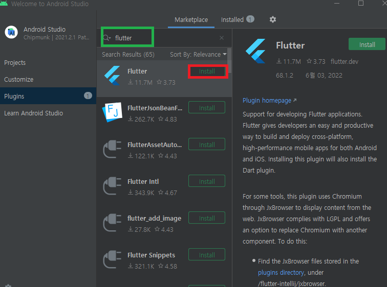 살펴보면 Flutter와 크ㅐ롬, 안드로이드 스튜디오, VS code 등등이 있나 확인하고 있네요!
