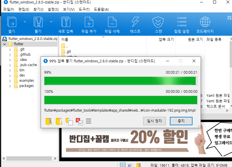 압축파일 다운로드가 다 진행되었다면 압축을 풀어야 합니다.