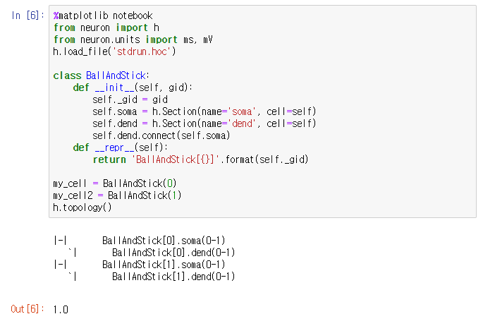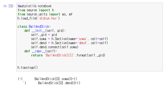 soma와 dend를 연결하기 위해서는 역시 class 속 함수의 내용을 바꿔줘야 합니다.