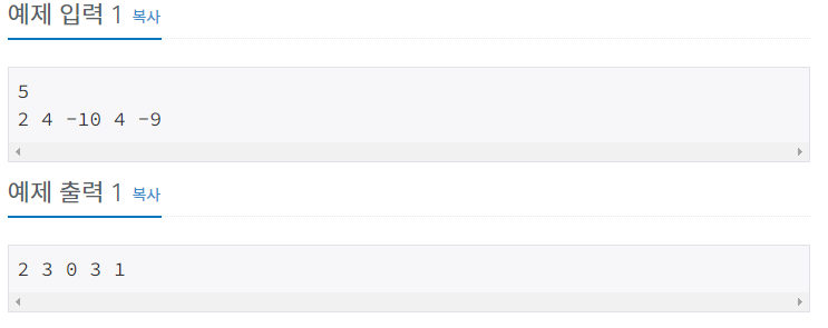입력 예제를 보면 -10이 가장 작아서 0 그 다음 -9는 1...