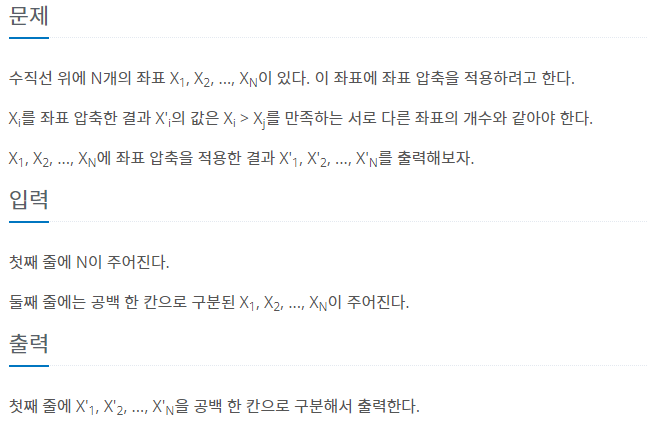 좌표 압축 한다는 것은 가장 낮은 수부터 0으로 압축하여 다시 표현하는 것입니다.