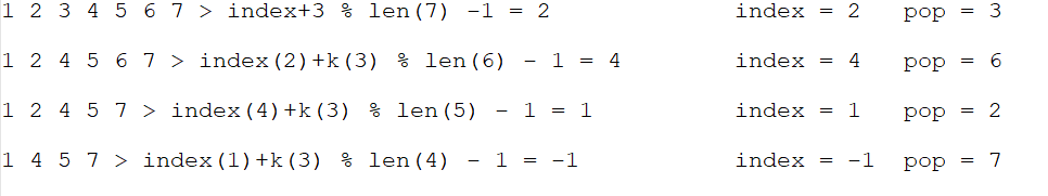 1부터 시작되어서 3번 째 수를 빼내고 그 다음은