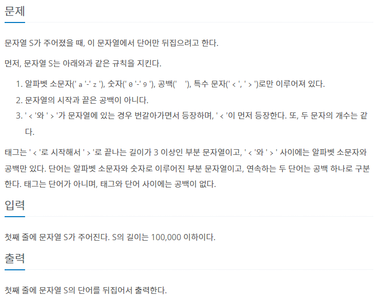 br값이 1인 경우 즉 괄호 단어를 입력받는 중인 경우에 괄호가 닫히는 >를 입력받게 되면 역전시키지 않고