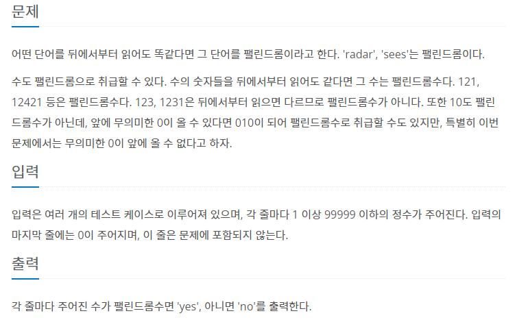 n과 r을 비교했을 때 같으면 팰린드롬수가니까 ans에 yes를 저장하고