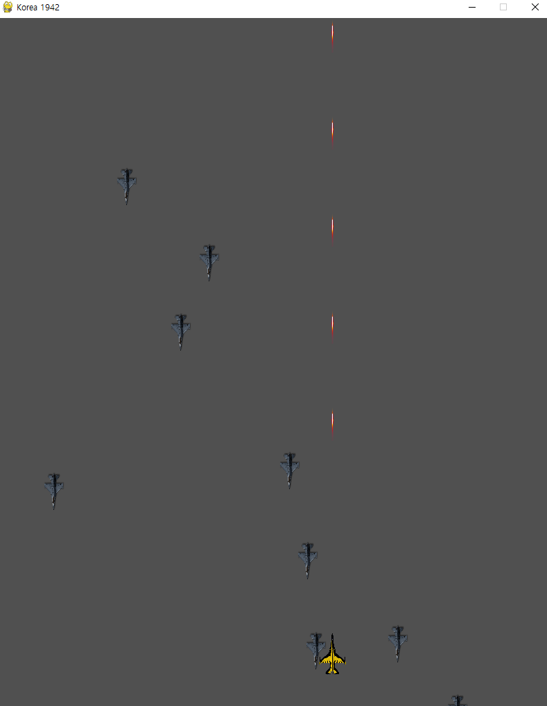 전에 했던 총알 만드는 코드와 비슷합니다. 적기의 size와 x좌표 y좌표만 다르고 구조는 비슷합니다.