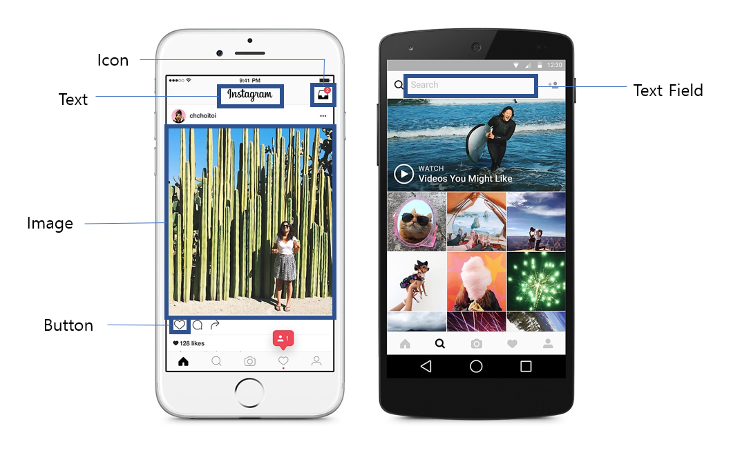 위와같이 인스타그램의 Instagram 부분이 위와 같은 형식으로 구성됩니다.