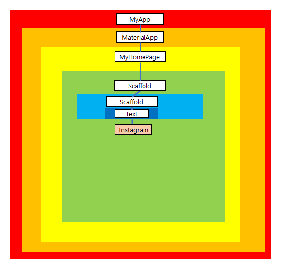 한 위젯 내에 다른 위젯들을 포함시킬 수 있기에 위젯들은 서로 부모 자식 관계로 구성됩니다.