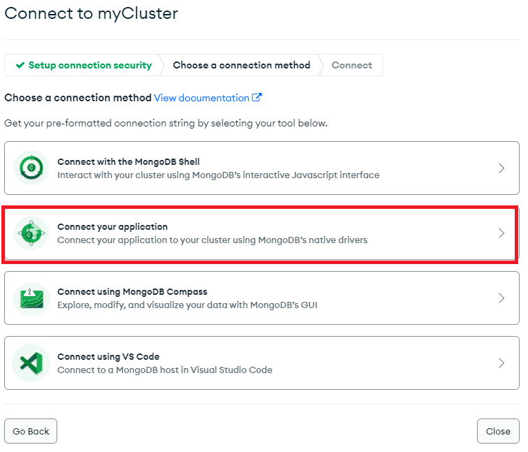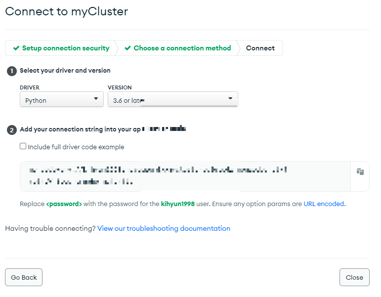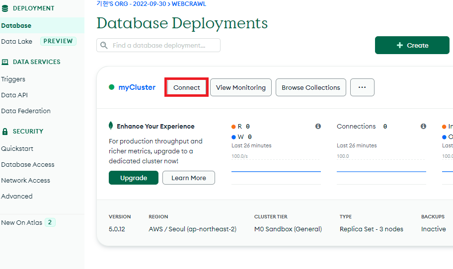 연결할 URL을 얻어오기 위해서는 다시 MongoDB 사이트로 가야합니다.