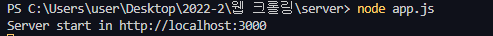 위의 js코드는 express 서버 코드 밑에 같이 썼습니다.