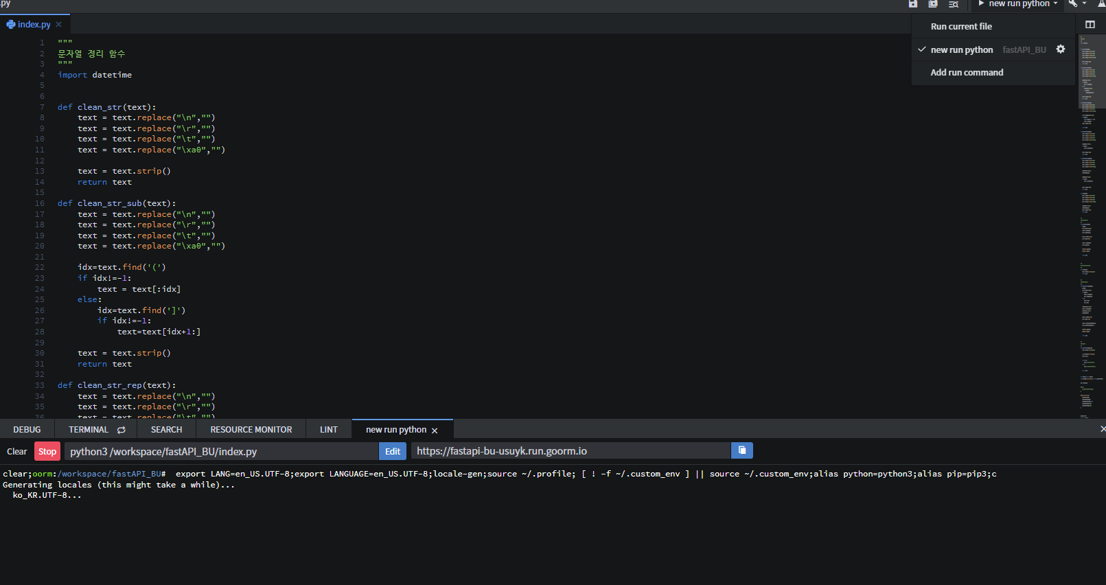 밑에 터미널을 통해서 api 서버 여는 코드를 치면
