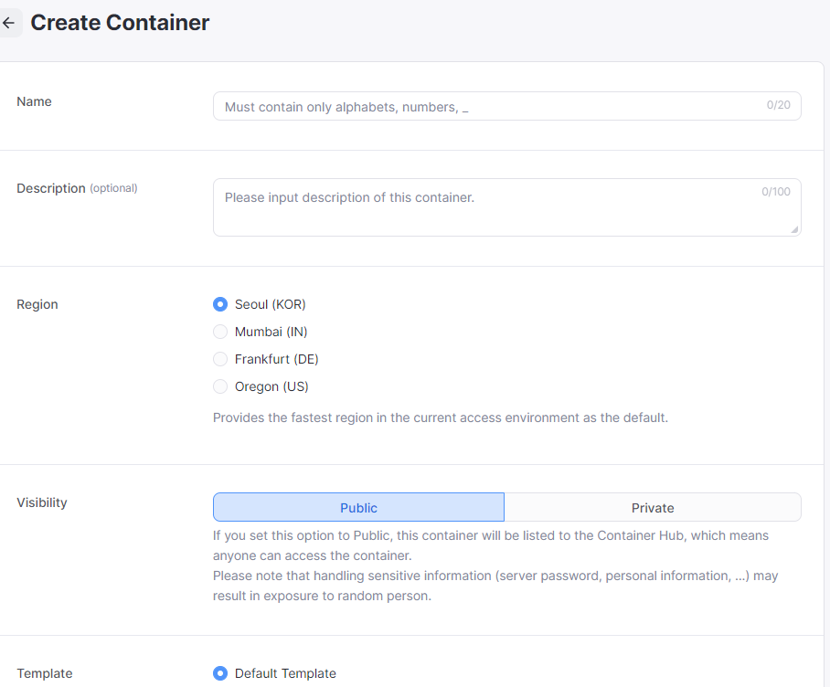 별다른 설명 할 것 없이 그냥 플러스 버튼을 클릭하며 새 컨테이너를 만들어주고
