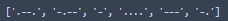 ('R', '.-.'), ('S', '...'), ('T', '-'),