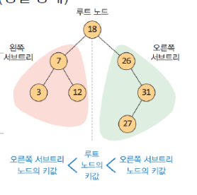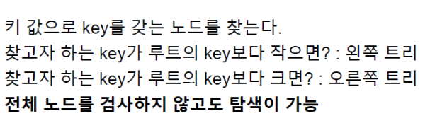 이진 탐색 트리란 효율적인 탐색을 위한 이진트리 기반의 자료구조.