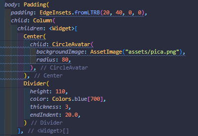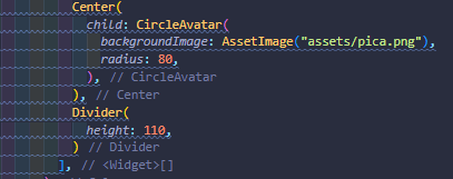 CircleAvatar 위젯을 사용하면 사진을 동그라미에 넣어서 표현할 수 있습니다.