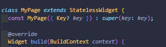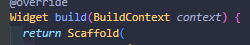 이 명령어에서 볼 수 있듯 build 함수는 Widget 타입이고