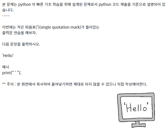 작은따옴표를 출력하고 싶다면 큰따옴표로 묶고 큰따옴표를 출력하고 싶다면 작은따옴표로 묶습니다.