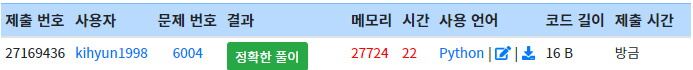 | [코드업][기초 100제][파이썬] 출력하기 06 (0) | 2022.07.11 |