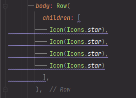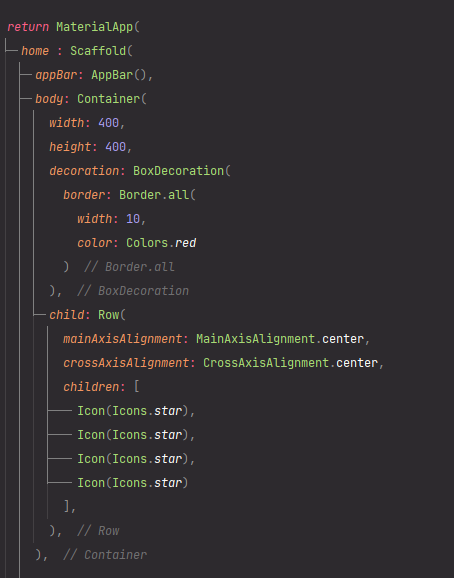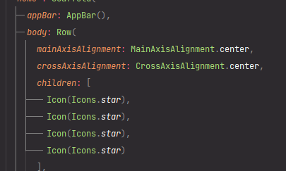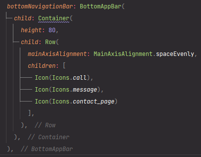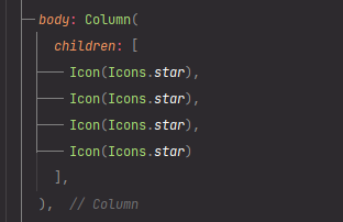 이렇게 Row 위젯 안에 children이라는 배열을 이용하여 아이콘을 매치합니다.