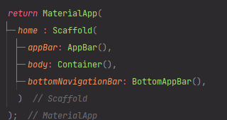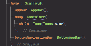 이렇게 appBar, body, bottomNavigationBar 3가지로 나뉩니다.