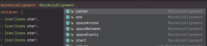 요소 정렬은 mainAxisAlignment를 사용해서 정렬할 수 있습니다.
