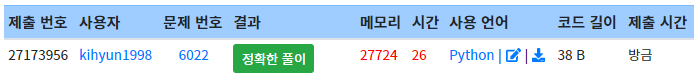 | [코드업][기초 100제][파이썬] 시분초 입력받고 분만 출력 (0) | 2022.07.12 |