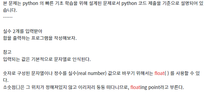 | [코드업][기초 100제][파이썬] 정수 2개 입력받아 합 구하기 (0) | 2022.07.12 |