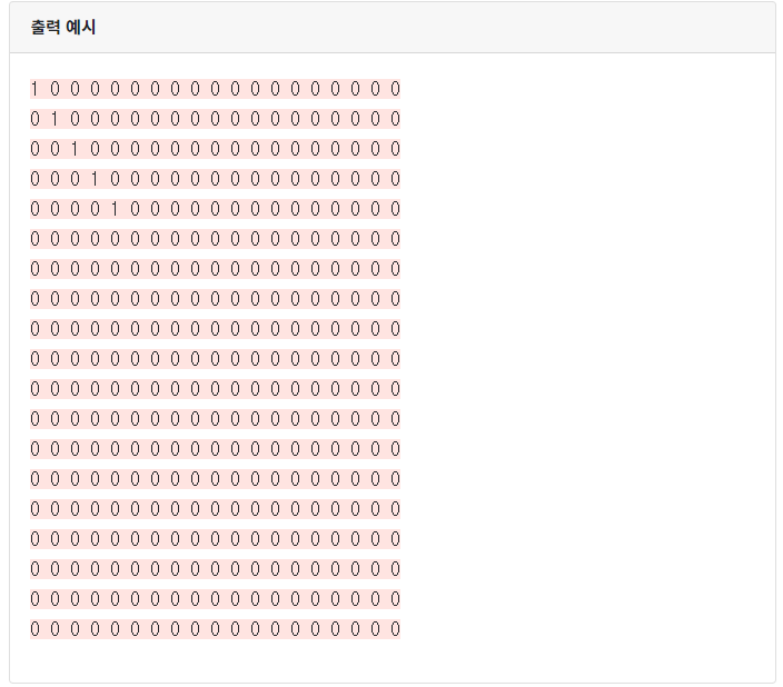 문제를 정리해보면 19*19의 바둑돌 판이 있고 흰돌이 놓인 위치는 1 아닌 위치는 0으로 출력해야한다.