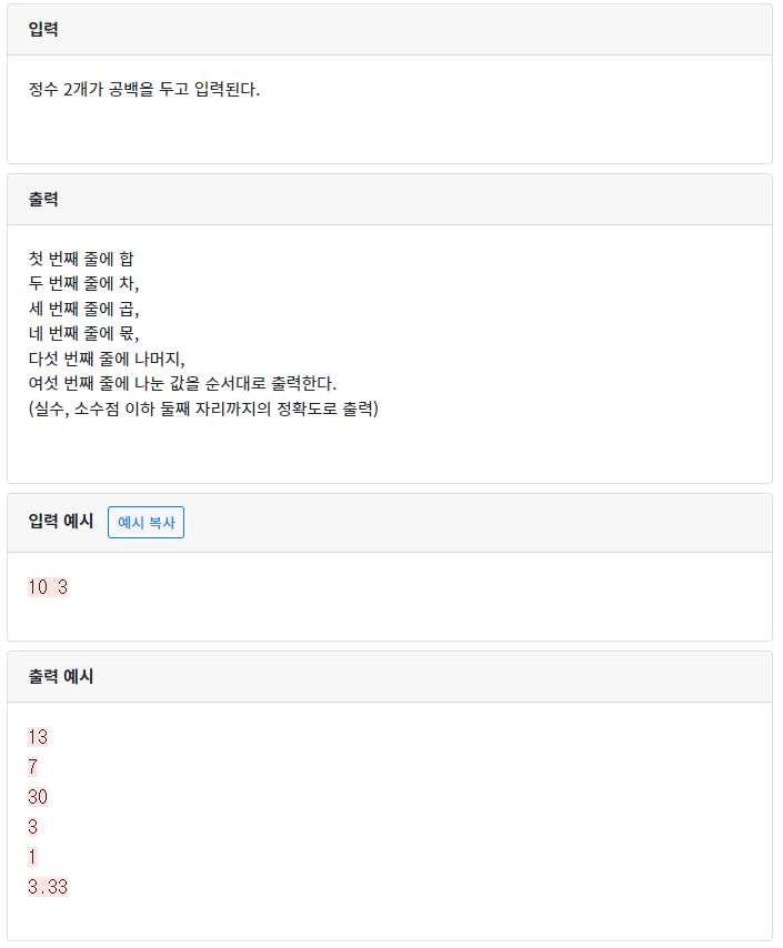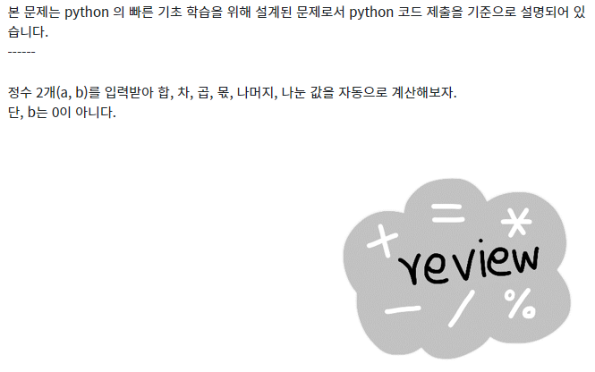[코드업][기초 100제][파이썬] 합, 차, 곱, 몫, 나머지, 나눈 값 출력